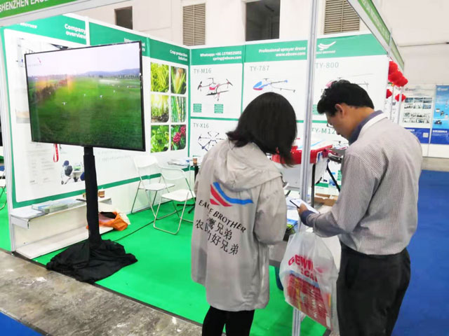 展会期间,屏幕展示播放天鹰兄弟产品 —— 多旋翼植保无人机TY-M12,吸引前来参展客商纷纷驻足,并向现场负责人询问产品性能、作业面积、作业效率等问题。现场负责人详细为询问客户讲解TY-M12独创设计C型机臂,一键式折叠收纳方便快捷,机身模块化设计维养便捷,其作业效率高、全自主飞行操作简单等诸多优势,通过全方面了解客商们对其产品赞赏不已,并达成合作意向。