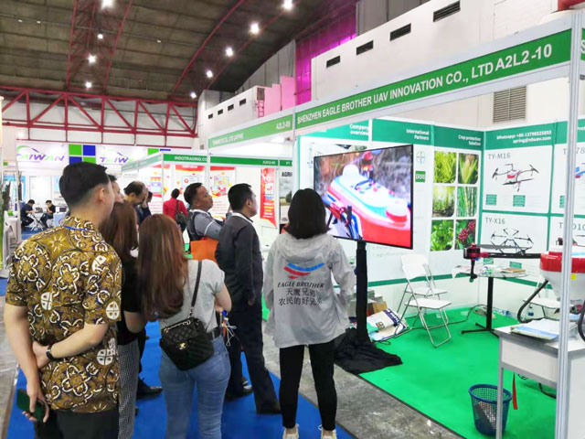 外贸销售人员表示,印度尼西亚是亚洲最大的经济体之一,土壤肥沃,适宜农业发展,农业人口约占全国人口的70%,全国耕地面积约占国土面积的10%,农业现已成为印尼的支柱产业。印尼作为农业大国,随着农业现代化的推进,印尼人民对农业机械设备的需求与日俱增。因此,天鹰兄弟在印尼还有广大的市场前景,植保无人机能更好服务现代化农业的发展。此次印尼展当地部分客商已购买天鹰兄弟植保无人机,接下来将在当地开展飞防作业演示与培训。