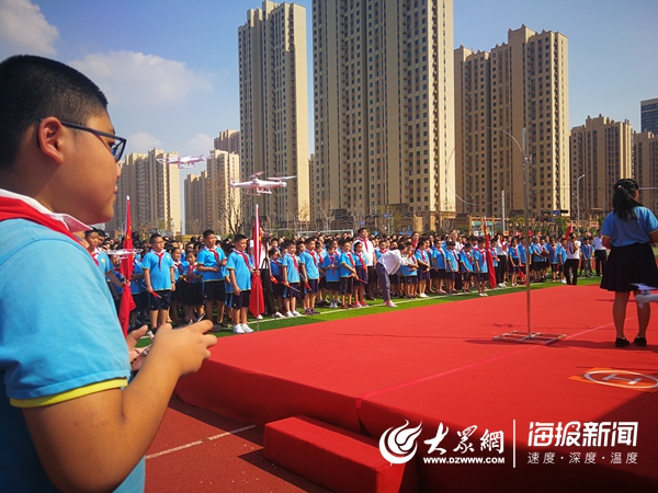 大众网·海报新闻济南9月2日讯(记者 孙杰)今天是中小学开学第一天,各个学校也是卯足了劲想给一年级学生尤其是一年级新生一个不一样的开学典礼。在济南市芙蓉小学开学典礼上,该校无人机社团的学生们操控18架无人机进行表演,以此迎接一年级的学弟学妹。