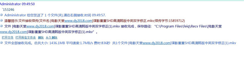 2)多跳后传输速率:市面上同类自组网产品的8跳后速率在2Mbps左右,在此次检测检验中,慧明捷自组网系统在8跳后,836秒内即传输完成1.4GB的文件,即8跳最小速率有效传输速率达到13.6Mbps。
