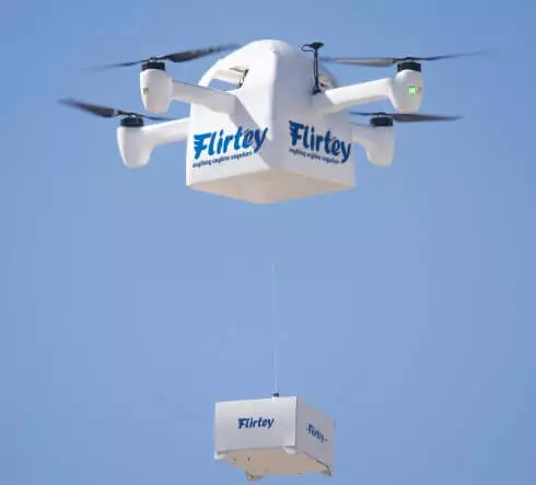 该公司发言人表示,最新无人机交付系统的目标是在不到10分钟时间内为客户提供包裹,当然也包括送餐服务。Flirtey 鹰无人机交付系统可用于大部分有风天气(95%),飞机抵达目标上空,降下绳系盒,一旦包裹被取走,然后回收绳子即刻飞走。Flirtey 鹰由一个自动软件平台控制,配置一个固定停机平台。事实上,这样的停机平台可以扩展至合作伙伴来加盟,最终实现运营商所有无人机门到门的交付。