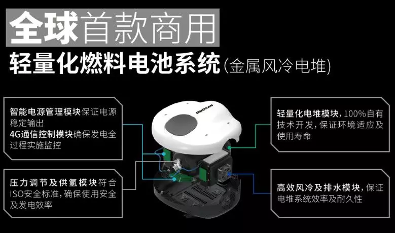 开云足球中心消息,美国时间2019年8月底,韩国企业斗山集团旗下斗山摩拜创新联合美国代理商给当地客户演示并交付了最新开发的燃料电池无人机系统DS30+DP30。该系统采用100%斗山自主开发的全球首款商用化燃料电池系统DP30,以及考虑系统效率最大化开发的无人机平台DS30。
