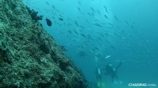 另外,潜行多睿配有2*250流明补光灯,近日光标准,遇到弱光的水下环境,两盏小灯简直就是生命之光,重点是开灯之后整个画风更有科幻大片的场景感。