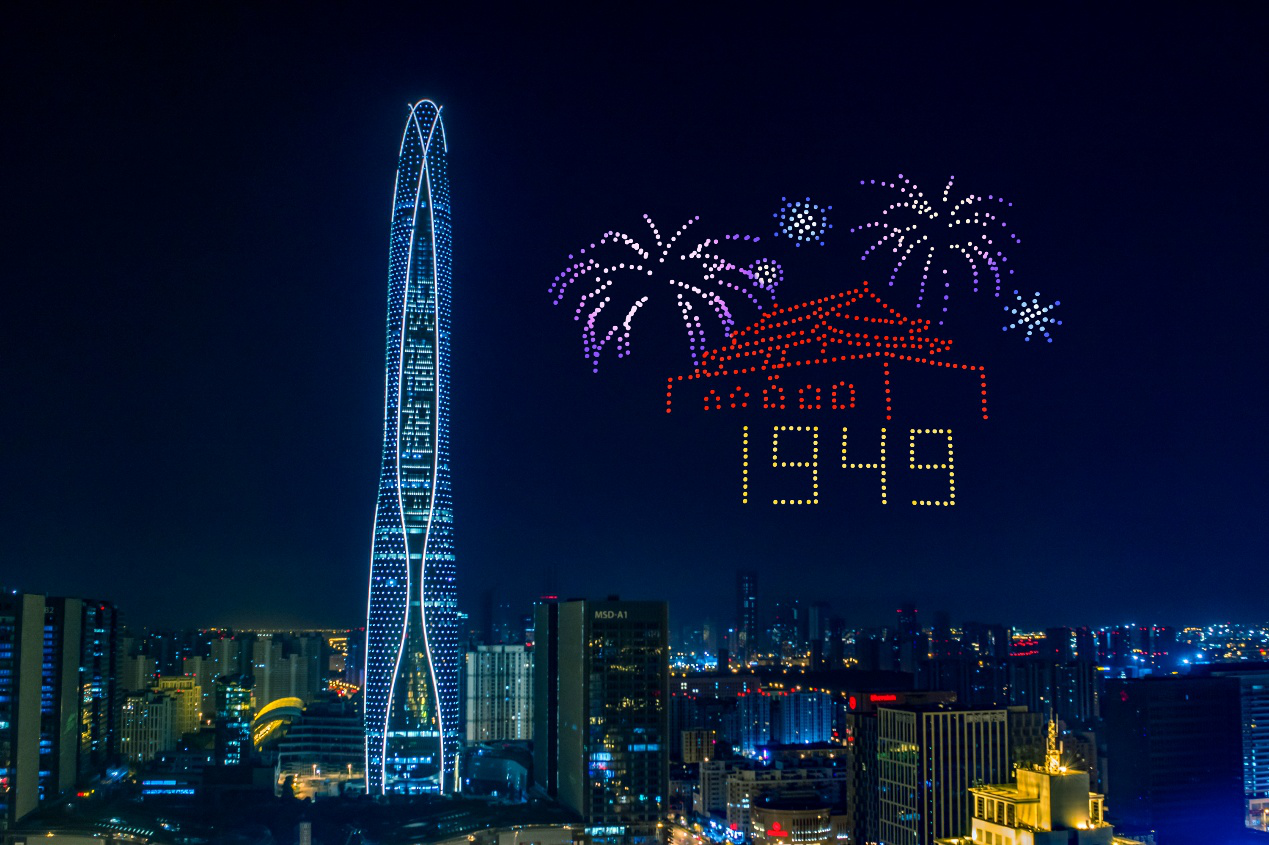 1001架无人机,用变幻的舞步,跳动的时代数字再次了解共和国披荆斩棘的历史足迹。