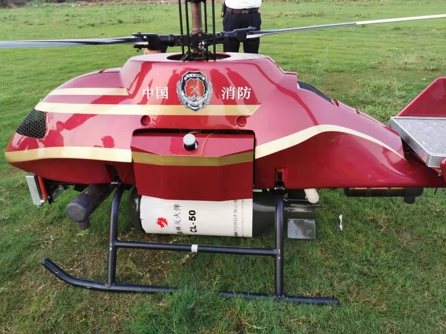这一款大型的单旋翼无人机就是来自于江苏锦程航空科技有限公司(以下简称:锦程航空)的中型森林消防无人机,其负载能力在50-70kg左右。该款飞机具备“察打”的能力,在消防方面的应用主要是用于前期山火的巡察和及时控制和扑灭的效果。对于一些大型的山火,那么就要出动公司大型的挂载上百公斤级的消防无人机了。甚至,公司准备研发能挂载1吨左右的消防灭火弹的重型森林灭火无人机,可用于于类似于四川凉山这样的森林大火的产品,从而大幅度的降低人生财产的损失。