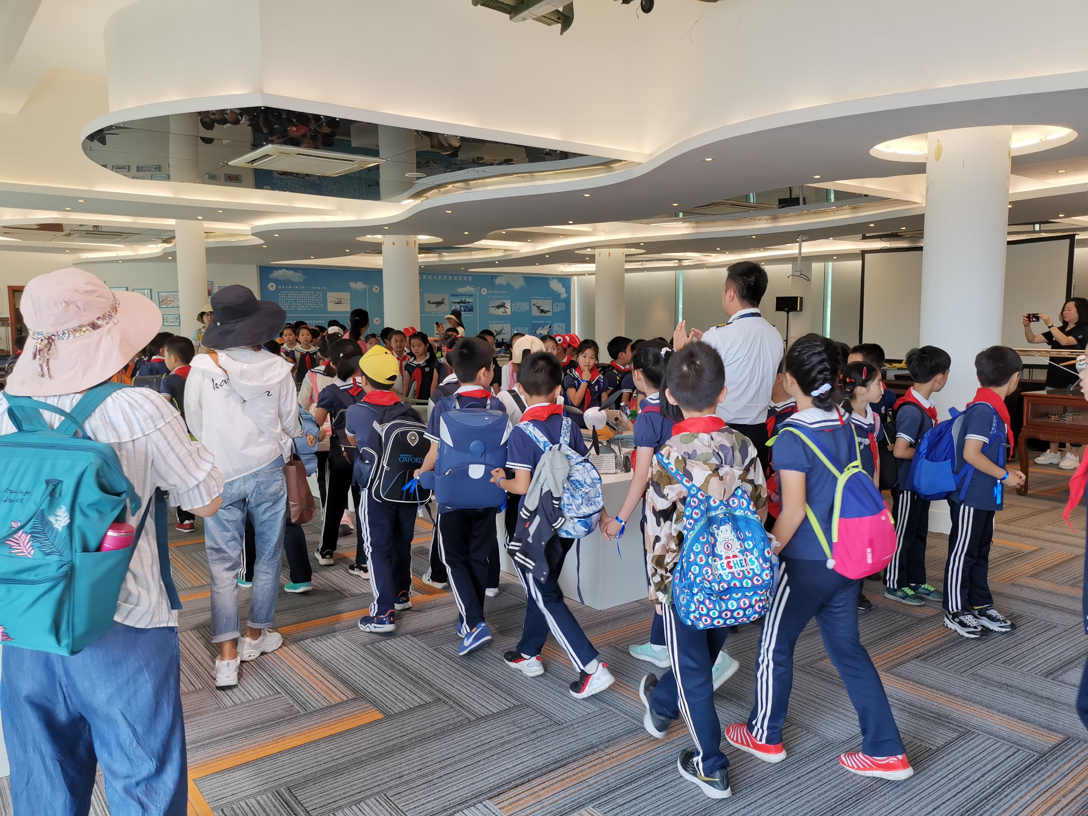 整个活动分为静态展示以及飞行展演两个项目,静态展示在玄风航空进行,整个展厅里摆放着众多的航模、无人机、模拟驾驶器,而孩子们在老师的带领下依次进入到展厅内进行参观,并由玄风航空的教练员为孩子们进行科普讲解。