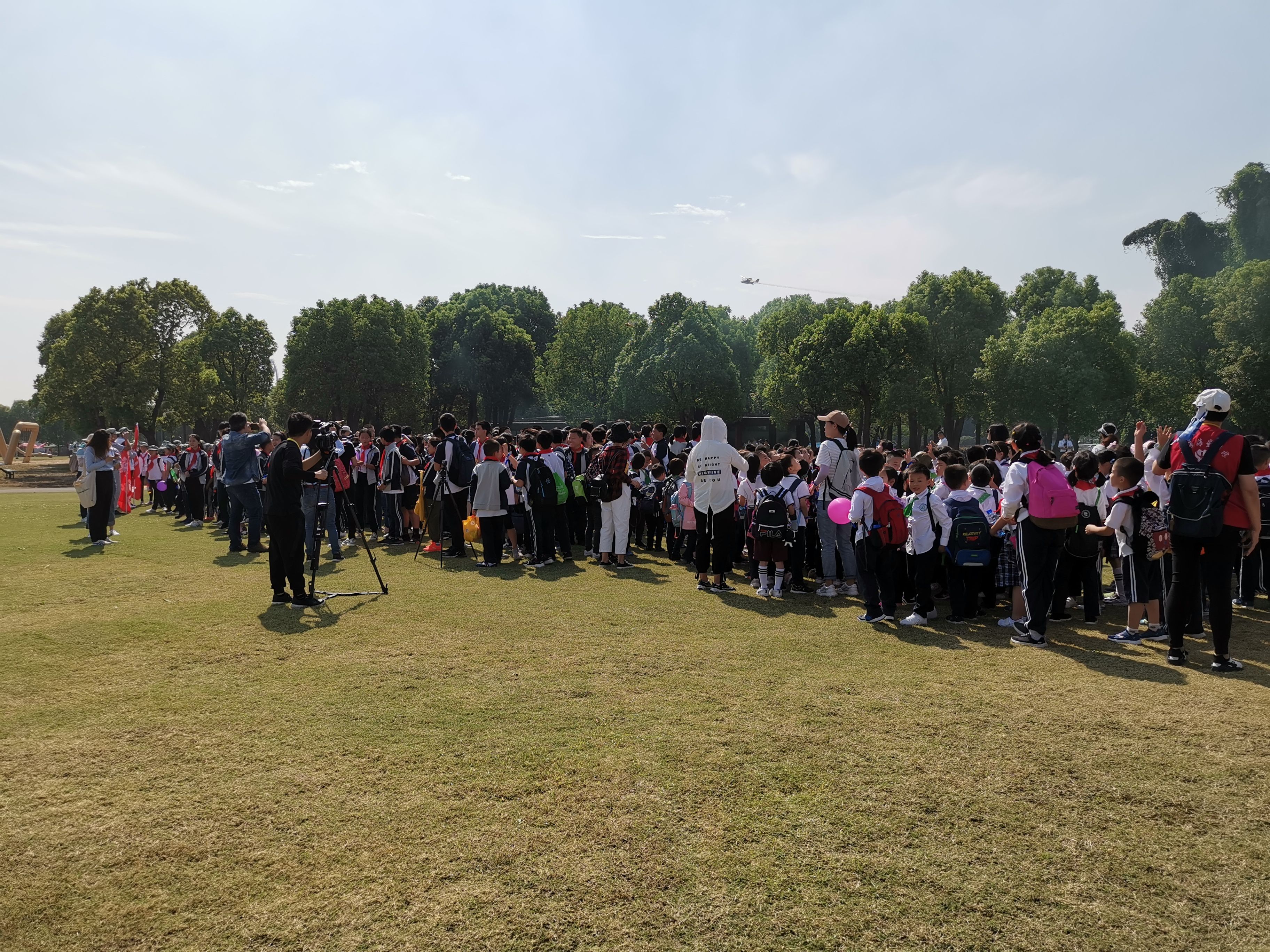 在一次参观完展厅后,我们一起在上海月湖雕塑公园内集合,准备观赏接下来将要进行的现场飞行表演。