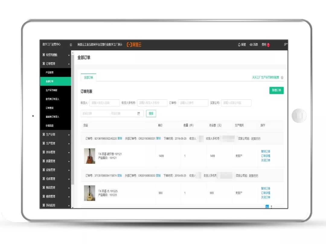 通过步科产销通下发的订单会同步至阿里云数字工厂运营中心;