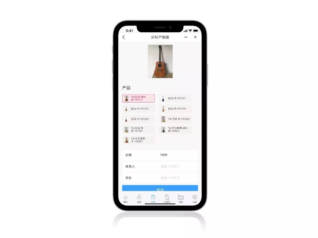 通过步科产销通,观众可以选择一款吉他产品进行下单;