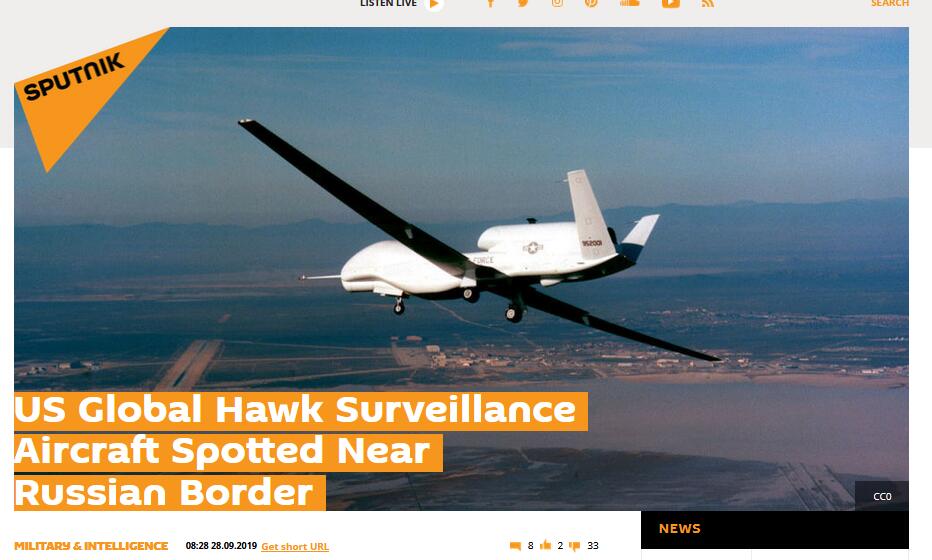 [环球网报道 记者 李东尧]“俄国防部一再敦促华盛顿放弃在俄边境附近的监视行动,然而美国军方却无视这些要求。”俄罗斯卫星通讯社28日消息说,根据监测网站飞机雷达平台(Plane Radar)报告,一架美军“全球鹰”战略侦查无人机当地时间27日在俄边境被发现,当时正在对顿巴斯(乌克兰东部)与俄罗斯黑海海岸线附近进行监视。