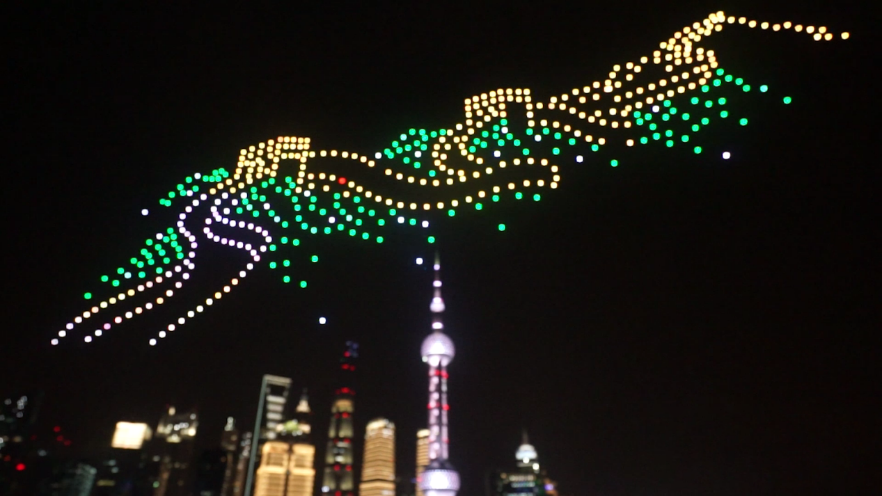 在本次节目中,亿航白鹭带来的999架无人机,在上海外滩实现了全球首次无人机与明星同台的实时演出。
