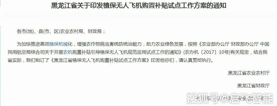 日前,黑龙江省农业农村厅下发通知,将在全省范围内开展植保无人机购置补贴试点工作,具体情况是怎样呢?我们接着往下看