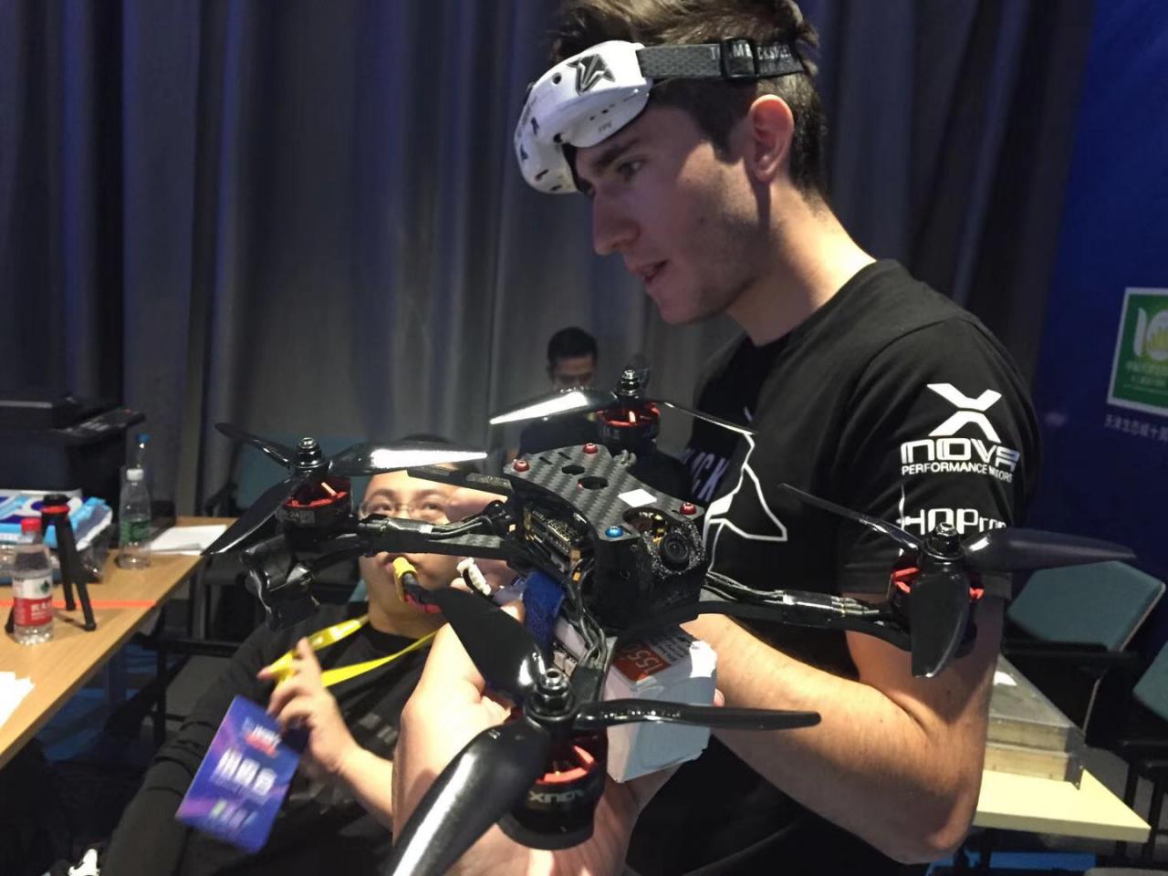 娱乐赛事“空中F1”将会邀请现场无人机爱好者和观众共同参与,多名飞手同时起飞,利用FPV眼镜以第一人称视角遥控飞行,率先穿越过所有障碍飞完全程者获胜。飞行过程中的不确定性也成为比赛的独特魅力。