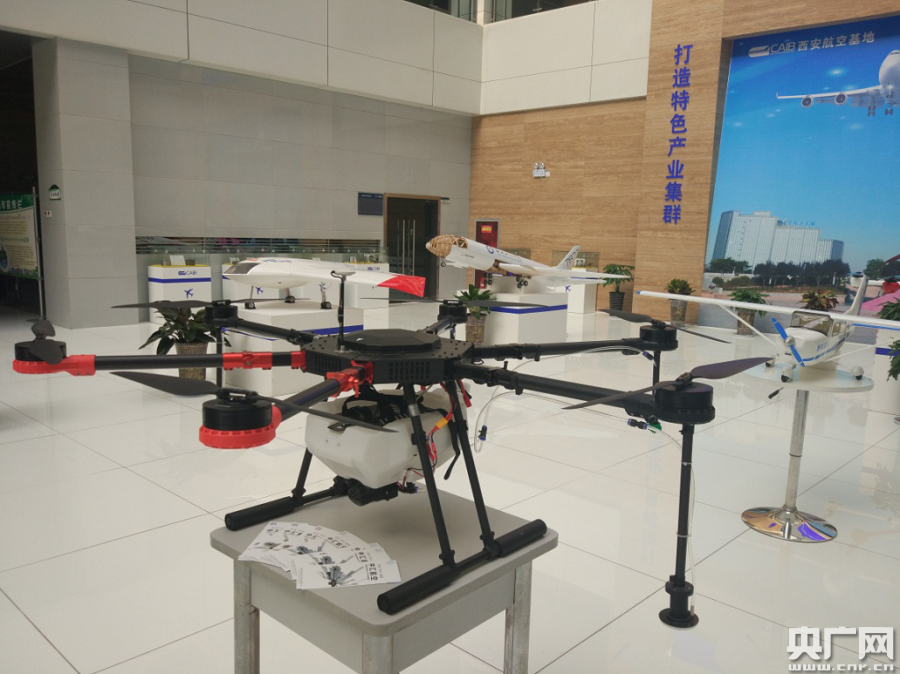 央广网西安10月16日消息(记者刘涛)10月17日,2019西安航展将于西安曲江国际会展中心拉开帷幕。备受关注的航空设备器材展,吸引到了数百家企业参展,不乏国内外知名优秀企业。其中,西安市航空基地中汇航空科技有限公司的ZHHK-14植保无人机,就是陕西西安民营企业自主研发的新型植保无人机。