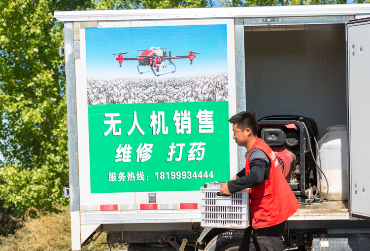 如今,在新疆已经很难再见采棉大军的身影,取而代之的是开着一辆辆酷炫的改装车、顶上载着显眼红飞机的精英植保队伍。
