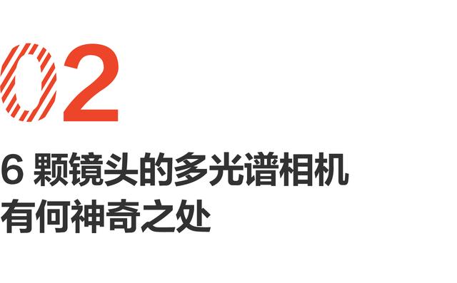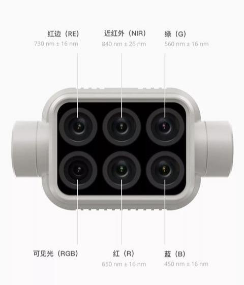 6 部相机协同作业,分别负责可见光成像及多光谱成像。5 部独立的多光谱相机,为行业研究提供了更为广泛的光谱信息样本支持。