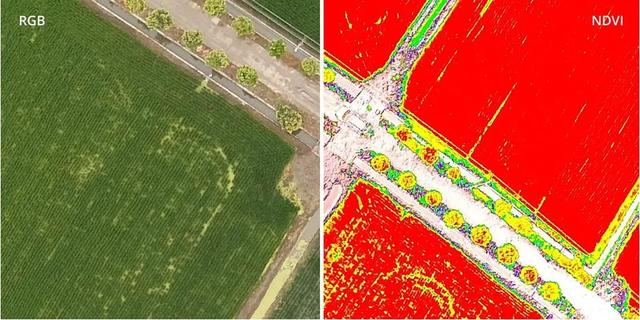 在执行作业过程中,实时获取现场画面,能为作业人员提供一手的直观信息。精灵 4 多光谱版无人机配合 GS Pro 地面站专业版支持 NDVI 分析功能,用户可在实时 NDVI 和实时 RGB 影像之间进行切换,及时发现异常状况,从而快速做出针对性决策。