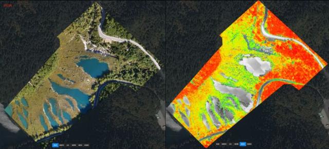 除了 NDVI 植被指数,将多光谱数据导入大疆智图还可获得更多不同种类植被指数的输出。为农作物科学管理氮肥、环保监测等多领域提供有效参考。