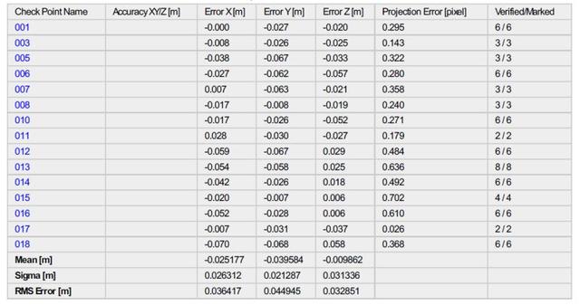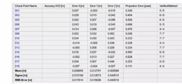 免像控处理,Pix4D空三检查点误差统计:
