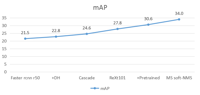 1. 我们将 Faster rcnn + DCN + FPN 作为我们的 baseline,因为这两个模块总是能在不同的数据集上起到效果。