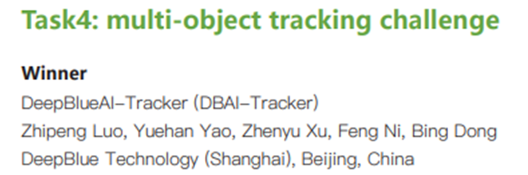 最终,来自电子科技大学的李宏亮团队获得了 Task1「图像中的目标检测」的冠军;中科院信息工程研究所的葛仕明团队获得了 Task3「单目标跟踪挑战」的冠军;来自深兰科技北京 AI 研发中心的 DeepBlueAI 团队获得了 Task2「视频目标检测」和 Task4「多目标追踪」两项冠军。以下是 DeepBlueAI 团队分享的解决方案