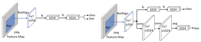 通过对比实验可发现:用 fc-head 去做分类,同时用 conv-head 去做回归,可以实现最好的效果。因为分类更多的需要语义信息,而回归坐标框需要更多的空间信息,这种方法采用「分而治之」的思想,针对不同的需求设计 head 结构,当然这种方法增加了计算量,在平衡速度和准确率的情况下,最后选择了 3 残差、2non-local,共 5 个模块。