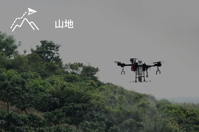 大疆植保无人机T16还有对山地、丘陵地带的感知仿地飞行能力,像是丘陵、山区得茶园、果园,它也能应对自如。大疆植保无人机T16的遥控距离最远3000米,机身配有广角的FPV摄像头和夜间的照明灯,对复杂天气和气候条件下的作业安全提供了保障。