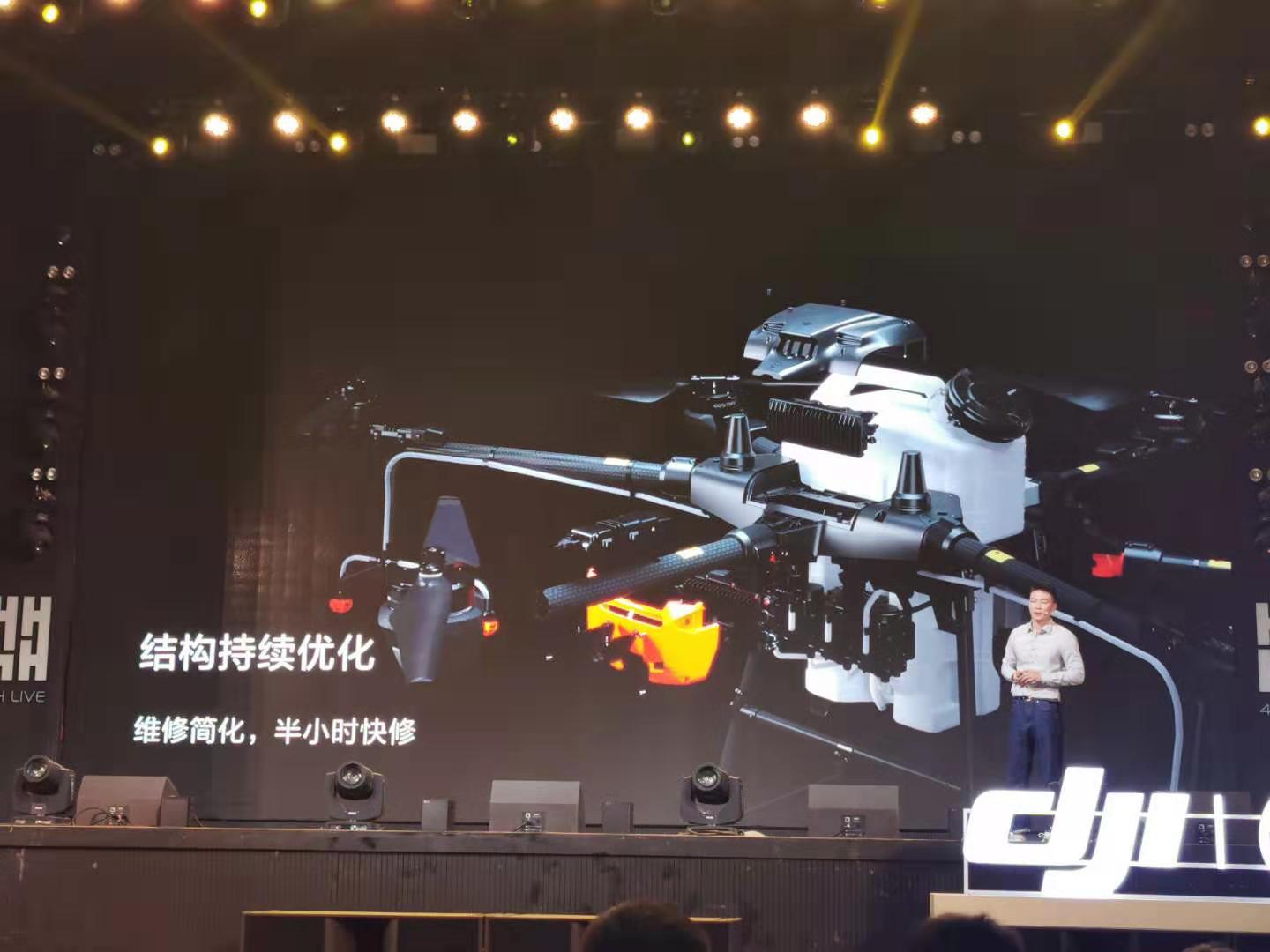 大疆农业全球市场销售总监陈韬作为本次新品发布的主讲人为现场嘉宾呈现了一场精彩的发布秀。毫无悬念,大疆新品T20在各项功能上都有很大的提升,比如:药箱加大提升到20L与行业与时俱进;配置了行业首创的全向避障雷达,一秒钟可以感知周边1万个点云,大大提高无人机对周边障碍物的感知和避让能力,从而减少炸机风险,提升作业效率;T20采用了8喷头 、4水泵 、4通道流量计设计,喷洒 流量可达6 L/min,而且各个道流量可自动校准,且保证每路药液输出的精度,也就是说保证每颗植物受药面积都均匀相等;T20整体结构也进行了优化,强度提升了30%,维修难度降低30%,保证80%的损坏 在半小时内可 完成快修 ;T20标配双IMU、双气压 计、GNSS+RTK双冗余 系统,为复杂的工作环境提供稳定的监控能力。此外,T20的航电板、电调等核心模块的防 护级别 达到IP67,让植保机在作业完后可直接水洗,方便清洁。
