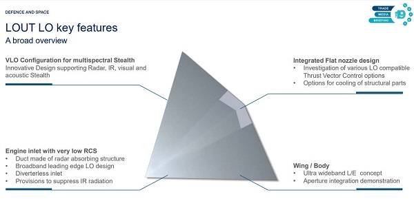 LOUT无人验证平台是的隐身设计采用一体化考虑,并且各个细节更加完善,采用的隐身措施更加先进,如果最终建成实体机,隐身性能预计将达到或者超过B-2轰炸机隐身水平。LOUT无人验证平台最终将无法成为真正得作战飞机,LOUT项目并不是要生产飞行试验台,而是要提供一个平台来开发和研制低可观测技术,从而为其他平台提供支持。此类技术将作为未来战斗机长期演进路线图的一部分,用于“台风”战斗机的改进升级,并将为法国、德国和西班牙正在开发的第六代战斗机“未来战斗空中系统”(FCAS/SCAF)提供技术支撑,以为未来可能包括隐身远程飞机。