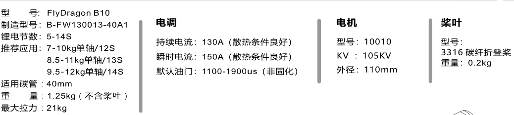 为满足广大植保机厂商的需求飞盈佳乐发布大载重植保动力套装【FlyDragon B10动力套装】↓↓↓