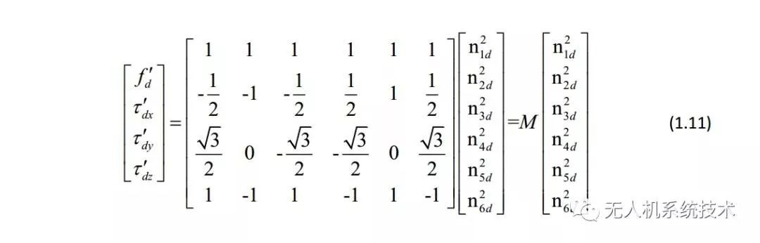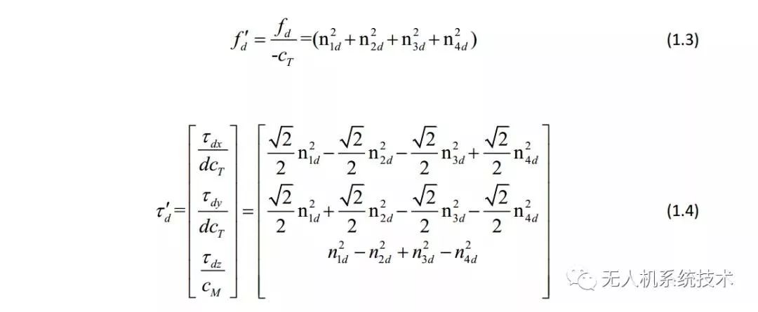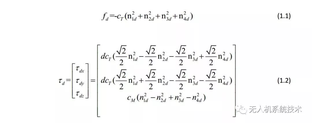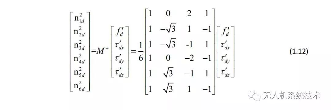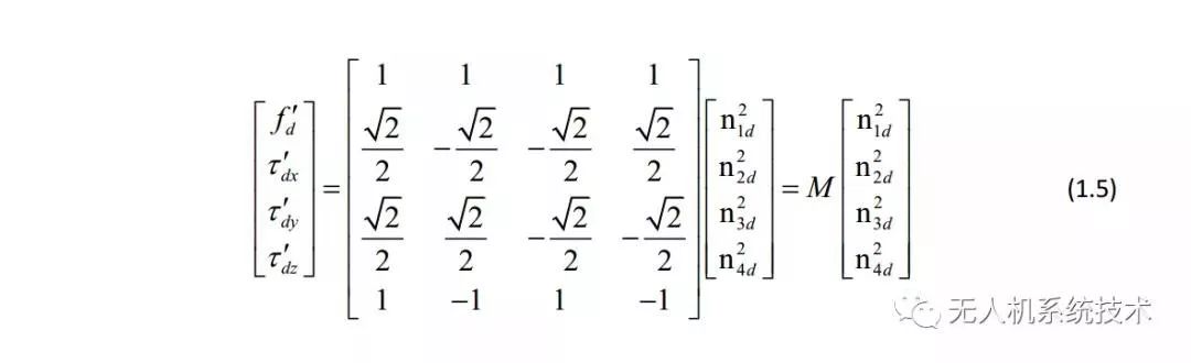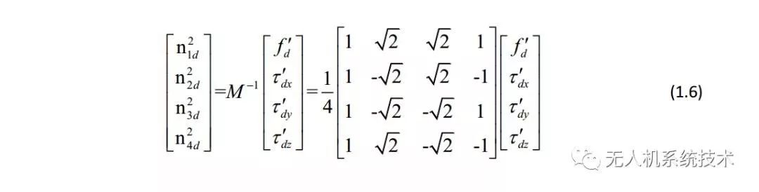 在目前的绝大部分飞控中,控制分配的作用主要是将虚拟控制输出映射到具体执行机构的输出,也就是求取期望升力、期望力矩到各电机期望转速的映射矩阵。