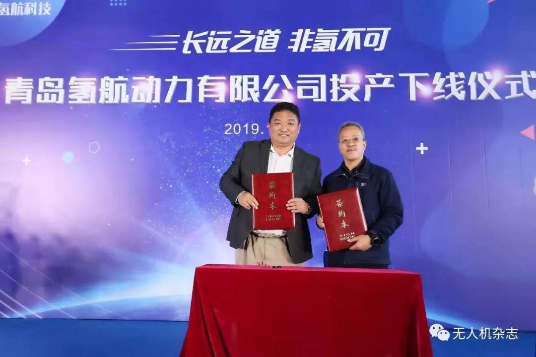 11月9日,青岛氢航动力有限公司(下称青岛氢航)氢动力无人机投产下线仪式在青岛同和高新区隆重举行。浙江氢航科技有限公司(下称氢航科技)董事长刘海力,平度市委书记谢兆村,市委常委、副市长毛军响,中国信息协会通航分会副会长、北航校友通航协会驻会副会长兼无人机专委会总干事程泊霖,北航青岛研究院院长冯文全,北航青岛校友会秘书长李林等领导嘉宾参加投产下线仪式。