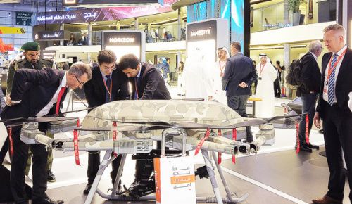 EDGE集团是阿联酋第一大军工集团,旗下25家企业,涉及陆、海、空、天、电各领域军工合作,是阿联酋军工发展的旗舰集团。中航技公司代表中国航空工业与阿联酋在无人机领域有着广泛而深入的合作,阿方一直关注A-HAWK-I无人机的开发进展, 针对性地提出了用户使用需求。此次中阿双方联合展出该产品,共同进行市场营销,同时双方将合作对该无人机产品进行持续升级与优化,致力于打造一款世界领先的电动多旋翼无人机,引领军民两个领域的使用需求。