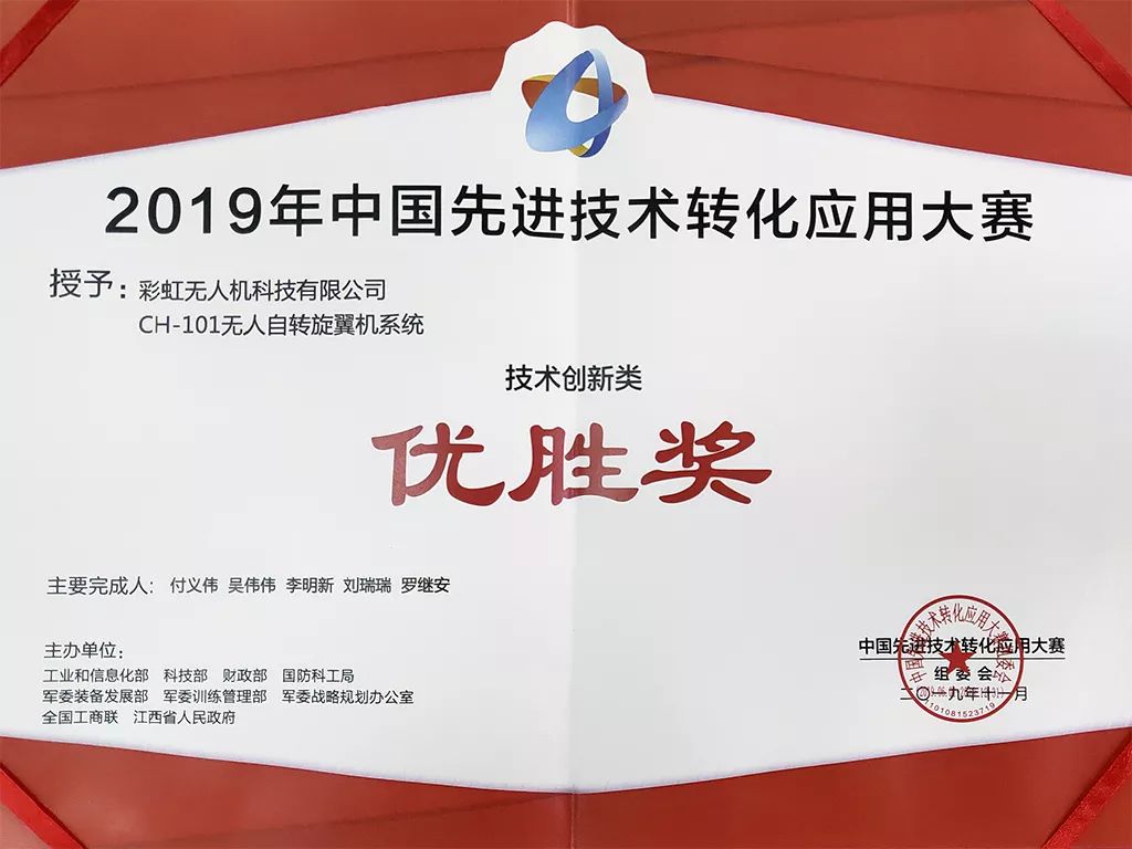 2019年11月19日-22日,中国先进技术转化应用大赛总决赛在江西南昌举行。彩虹无人机科技有限公司两个参赛项目成功入围,参赛团队在比赛中激情澎湃、奋勇拼搏,一举斩获大赛金奖和优胜奖。