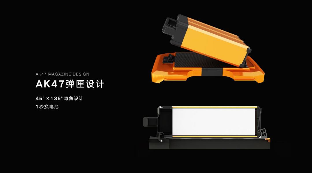 F22采用一种45度乘135度的弯角几何卡扣的设计方案,设计原理和AK47步枪换弹夹的原理一样,AK47是往前一推,就可以秒换弹夹,那么我们电池只需往下一点,就可以秒换电池。整个电池和炮台的接触面积百分之百融合,增强了受力角度,从而使电池的固定更加稳固,并且更耐磨损,提升电池外观的使命寿命。
