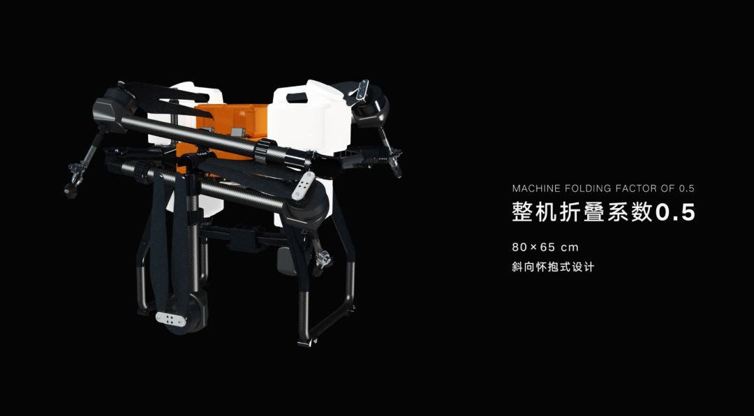 行业首创的斜向怀抱设计,其优点在于整机折叠系数为0.5,一个普通的皮卡车可以拉2个F22无人机,斜向角度为45度。
