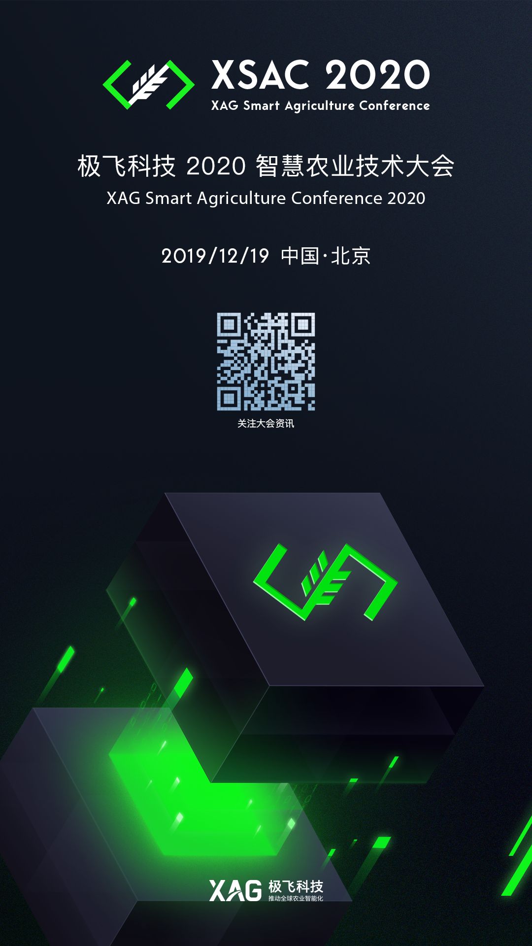 由极飞科技主办的 “2020 智慧农业技术大会 (XSAC)”将于 12 月 19 日在北京举行,届时我们将全球首发 “2020 智慧农业报告”,发布一系列智慧农业产品与技术成果,并携手各界合作伙伴,为世界农业打造智慧农场中国样板。