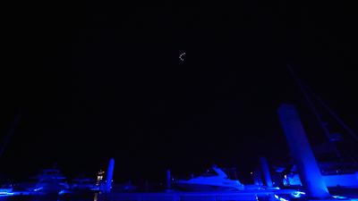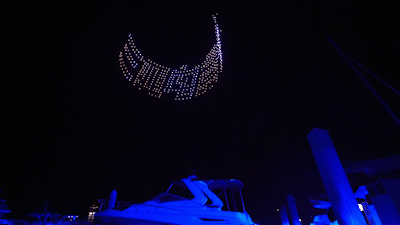 无人机阵型不断变化,BHM&WUCG 、电音节LOGO、Raver笑脸、Wolfpack 狼头一一闪现,与夜空交相辉映,极具视觉冲击,现场观众纷纷拿出手机拍摄记录下这一幅幅科技美景,并爆出阵阵惊叹,最后,本次飞行随着“我爱三亚”的字幕中,完美落下帷幕。