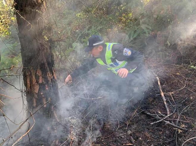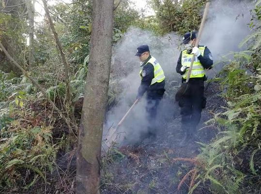 //警辅人员扑灭火星 防止复燃//7日,市公安局从市局机关、各分局(除高明分局)抽调近千名警力赶赴现场,配合清理过火山林,扑灭残余火星,防止死灰复燃。截至8日16时,参加救援的佛山公安警辅力量共协助清理过火山林约1千亩,清除复燃隐患28处。