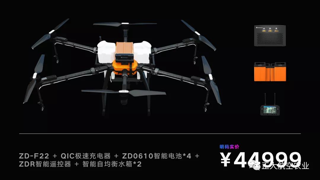 F22外观 F22外壳采取二战德军虎式坦克炮塔的棱角设计原理,搭配6轴碳铝复合机臂,展开2米的外观尺寸带来更硬朗的机身线条,使F22更加强势有力。 行业首创斜向怀抱设计,斜向怀抱设计的优点在于整机折叠系数为0.5,一个普通的皮卡车可以拉个2个F22无人机。斜向角度为45度,左右机臂的折叠恰到好处。 F22前后对称和左右对称的设计,一体框架结构对称轴的2侧有双把手设计是根据我们一体, 好的设计可以有延展性。方便我们搬运飞机使双手更有握力,更加人性化。 脚架的设计采用三种材料复合技术,独特的三层机构刚柔有度,在保持原有重量的情况下,比传统炭纤维脚架的柔韧度提高了20%,比铝合金的脚架的坚固性提升了30%。大幅度的提高脚架支持强度与抗耐摔系数。我们做了N多次的抗摔试验,脚架的损坏率为2%,远远高过市场上其他无人机产品。 一体框架结构设计。机臂折叠采用高强度尼龙材料。无人机能吸收90%碰撞时产生冲撞的能量,简称“吸能”。最大化保护飞机核心部件不受损坏。除了吸能设计之外还有快速更换机臂的优点,6轴的多冗余设计即使飞机断了一个桨叶和机臂,飞机不会立马姿态失衡摔在地上,而是继续调整姿态,并且自主迫降降低损失。这样的优点,使整机维修成本降低了80%。 原来炸机维修成本需要花2000元,现在只需要200元。 从机身机构和常用配件都做了独立设计、独立链接,这样模块化设计的优点在于速拆速修,有的无人机换机臂要拆装30个螺丝,F22换机臂只需拆装6个螺丝。更加节约时间和效率。 电池及双药箱 F22采用一种45°x135°的弯角几何卡扣设计方案,设计原理和AK47步枪换弹夹的原理一样。只需往下一点,就可以秒换电池。整个电池和炮台的接触面积100%融合,增强了受力角度,从而使电池更加稳固,并且更耐磨损,提升电池外观的使用寿命。 不是所有的双药箱都是智能自均衡双药箱。F22双药箱设计行业首创自均衡系统。当你插一个药箱的加药的时候药液实现自均衡,两个药箱同时插也可以实现。创新采用分体式自均衡水箱,在作业的过程中左手一个药箱右手一个药箱让人体受力均衡,这样的双药箱设计让打药更加轻松。我们预测2020年都会以双药箱的设计来主导市场。 动力系统 F22动力系统采用流体力学聚合物螺旋桨配搭高性能仿真永磁电机,使F22动力系统提升百分之45% 。ip67高防护不仅可以用水冲而且可以用水泡。提高电机使用寿命。 喷洒系统 F22喷洒系统比上一代喷洒系统提升45%。拥有22L额定载荷,8米超大喷幅,8升每分钟的超大流量,在载重方面超越市面上的植保无人机载重百分之20。 实际测试数据得出5米每秒900毫升的亩用量喷洒的雾滴>20个平方厘米,最佳喷幅为7米。 7米每秒900毫升的亩用量喷洒的雾滴>20个平方厘米,最佳喷幅为9米。 平均每分钟作业3.2亩,一个架次作业32亩,每小时作业190亩。 针对新疆棉花脱叶剂作业和南方果树作业,我们可以升级至16个喷头,9米超大喷幅,10升每分钟的超大流量。 飞控、监控、雷达系统 滑动查看更多图片 DF-F飞控系统是在DF-4第四代飞控技术架构进行研发。内置高速运算的处理器内核,由8颗ARM-A10处理器组成,(相当于苹果11pro的处理器)主频高达2.4GHZ,同时搭载4GB的运行内存和32GB EMMC存储空间,具备强大的运算能力。搭载STM32F103 MCU作为协处理器,用于实现和强实时设备的交互,确保整个系统的实时性。此外DF-F飞控产品提供丰富的接口支持,用于对机载设备(任务载荷、传感器、控制模块等)进行管理和控制。 RTK系统还加强抗干扰能力。添加备用GPS+磁罗盘,三重备份,飞行更加安全放心, 监控系统FPV 距离:3km,分辨率:720P,延时2毫秒,肉眼几乎感觉不到延迟,视觉效果更加流畅。ZDR高亮屏智能遥控器,具备RTK打点功能,可实现厘米级高精度准确定位规划作业。在配合APP时,可以实现植保作业规划更加智能化,给用户带来全新的非凡体验。 产品避障系统采用MOPro三向雷达系统,探测距离20米,角度广角120°,精度达到厘米级。田间轻松自动避障一切障碍物。高精度防地系统,精度可达5CM,适应各种作业地形,各类农作物。 客户说: 河南省众人植保服务有限公司樊建坤 他是我们的合作伙伴之一。作为有着15年农资销售经验的老牌农资人,樊建坤飞防辐射面积已达200余万亩。他表示,从事飞防行业4年有余,自2018年7月与正大航空结缘,该公司的植保无人机结实、耐用、效率高。“目前我有22个标杆市场,如今与正大航空携手,我有信心在未来发展至少30个标杆市场,并在每一个飞防市场提供至少一架正大航空植保无人机,服务好更多经销商和种植户,帮助他们减药增效。” 樊建坤说。 河南省南阳市瑞硕农机有限公司丁永顺 据了解,丁永顺的父辈就已经营农机20年有余,公司经他接手后便准备销售植保无人机,但一直没有寻得品质好、价格亲民的植保无人机产品,直到此次接触到正大航空。“正大航空的售后很周全,更换配件、易损件、螺旋桨等都是免费,质优、价廉性价比高。此外,厂家会给我配三个技术人员帮助我拓展市场,不需要消耗我的太多精力,而其他厂家都要依靠我们自己去跑。此外,这次参观了工厂更加了解正大航空的综合实力,前期准备采购10台。我要帮助更多农民多以补贴形势购买无人机,使他们的利益最大化,让更多种植户在绿色农业种植中收益。” 价格 滑动查看更多图片 明码实价19999起。正如董