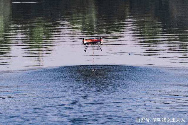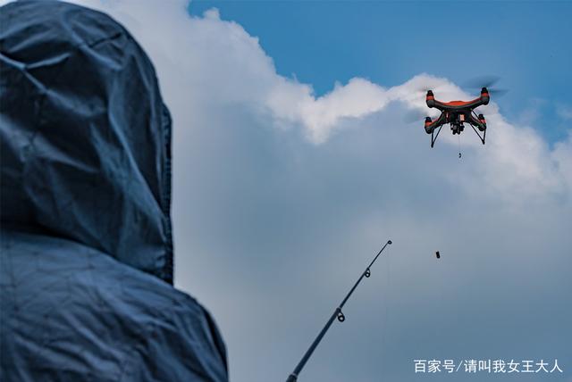 无人机可悬停在空中静待鱼上钩,当鱼咬住鱼饵后达到一定的拉扯力度,投饵器会自动释放鱼线,无人机可安然无恙地返航。