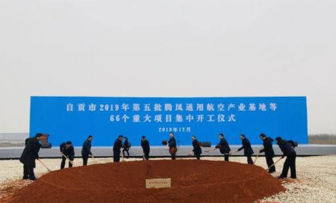 12月11日,自贡市2019年第五批腾凤通用航空产业基地等66个重大项目,在自贡航空产业园举行集中开工仪式。项目总投资252亿元,年度计划投资63亿元。作为此次集中开工的代表项目,腾凤通用航空产业基地项目,位于自贡航空产业园内,占地50亩,总投资3亿元。该项目将分三期建设无人机生产车间、无人机售后服务中心、无人机飞行培训中心;分别负责固定翼无人机和旋翼无人机的生产制造、销售、售后服务、培训等。项目建成投产后,预计年产无人机24架,就业人数约150人。