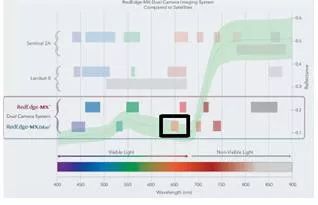 RedEdge- MX Dual与Landsat 8和Sentinel 2A卫星的中心波长及带宽对比: