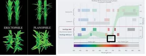 --530nm:叶黄素(类胡萝卜素)敏感绿色带,与叶片叶绿素光能利用效率和光合作用,及生理学研究相关。PRI-生理反射指数在VIS-NIR波段(一般用531及560nm)。