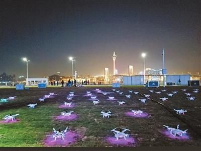 无人机列阵准备试飞。 澳门特区政府旅游局供图