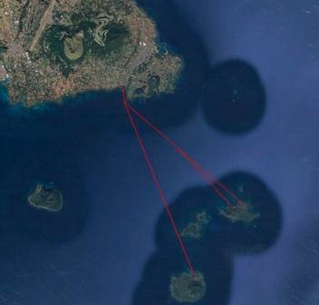 ・黄岛:距离福江岛以南约8公里。定期的班轮每天两次连接福江-赤岛-黄大。岛上有1家商店和2家招待所,供水状况良好。在1955年的大约650人的岛上,目前有40人居住在28个家庭中。钓鱼游客聚集在钓鱼的圣地五岛。