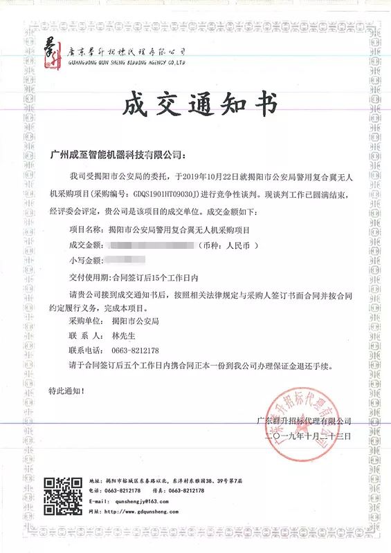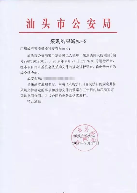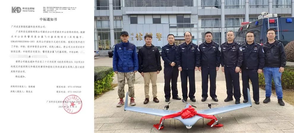 2019年年初,广东省公安厅在省公安厅民警培训中心举行广东省公安机关春运安保战时动员会暨警用无人机交付列装仪式。仪式上,省公安厅向汕头、韶关、河源、梅州、汕尾、阳江、湛江、茂名、肇庆、清远、潮州、揭阳、云浮等13个地市公安局配发了3VS复合翼无人机。