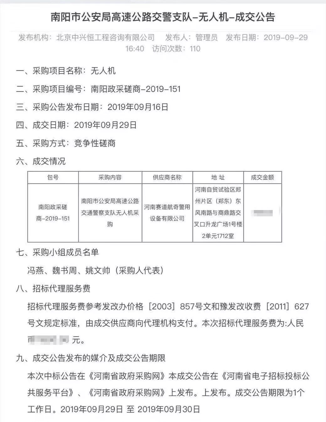 2019年9月,河南南阳市公安局高速公路交警支队采购我司3VS复合翼无人机用于高速公路的常态化巡检、事故勘察等工作。3VS无人机搭载的三轴30倍光电吊舱拍摄的视频清晰稳定,强大的机载AI功能可以轻松识别、追踪移动车辆,为交警的日常工作提供重要支持。