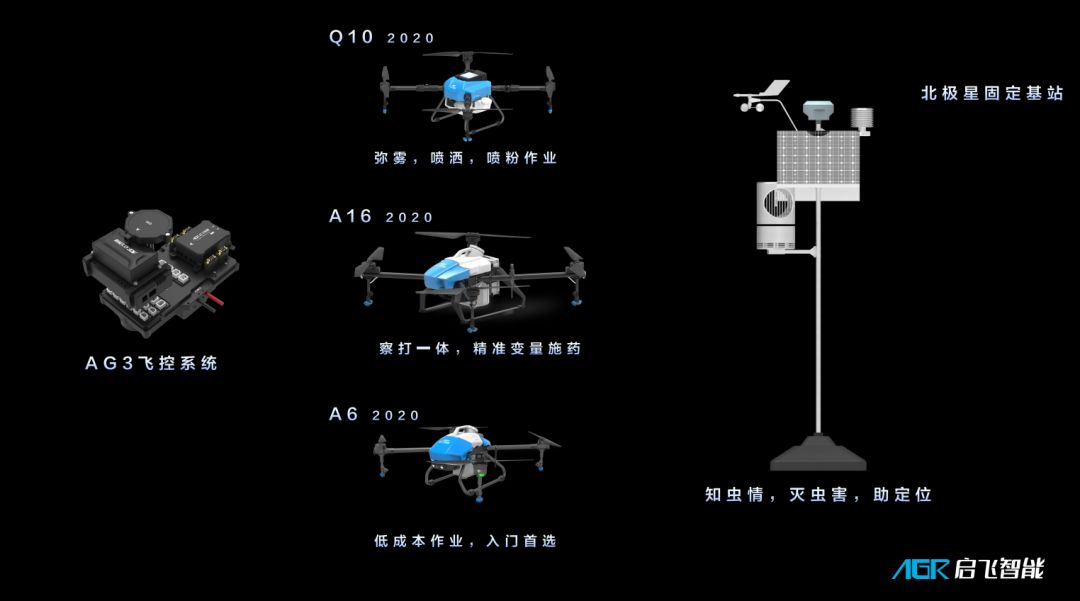 经过三代机型的升级和大量的市场实践,启飞智能科技已经在农用多旋翼无人机领域取得重大突破。尤其是推出核心产品A16、Q10、A10、A6植保无人机和AG3飞控系统,虫情测报系统等,能为农用植保、遥感测绘、消防救援、安防巡视等领域提供优秀的飞行平台,满足不同行业用户的需求。