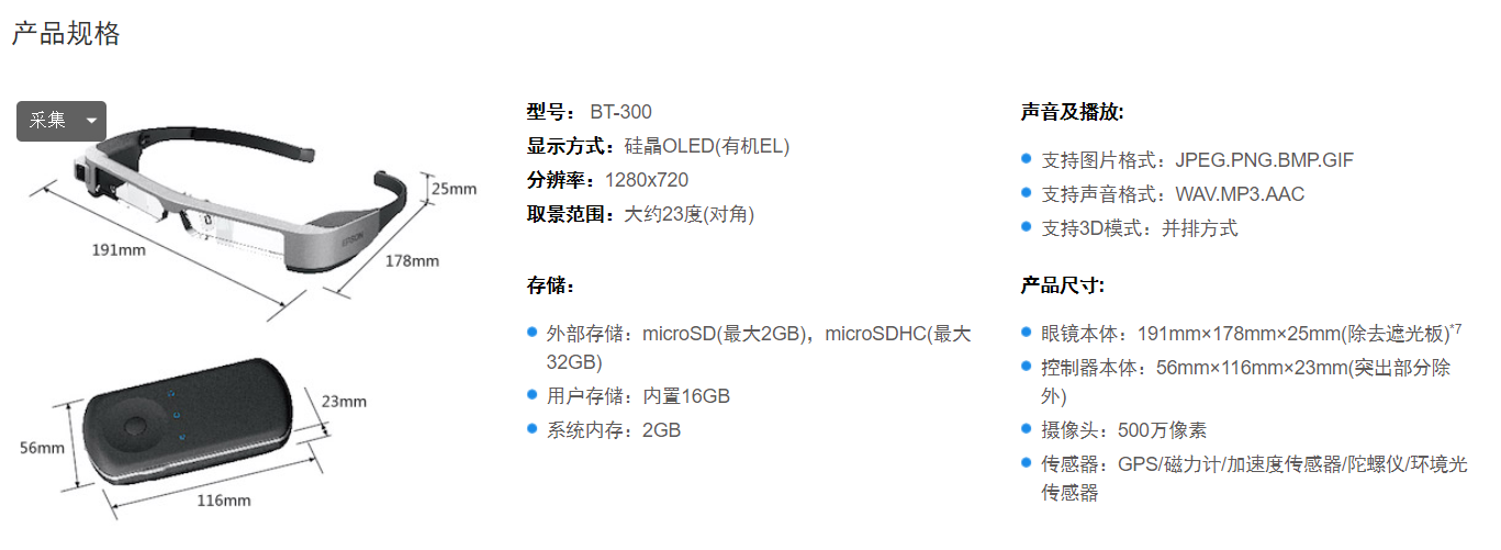 而爱普生与AR智能眼镜的故事大家可能不太了解。提到爱普生,很少有人不知道他家的扫描仪、投影仪、打印机。但是爱普生早在2011年就开始潜行投入AR技术的研究。目前已迭代到第三代产品——BT-300,旨在打造最轻量的AR眼镜。